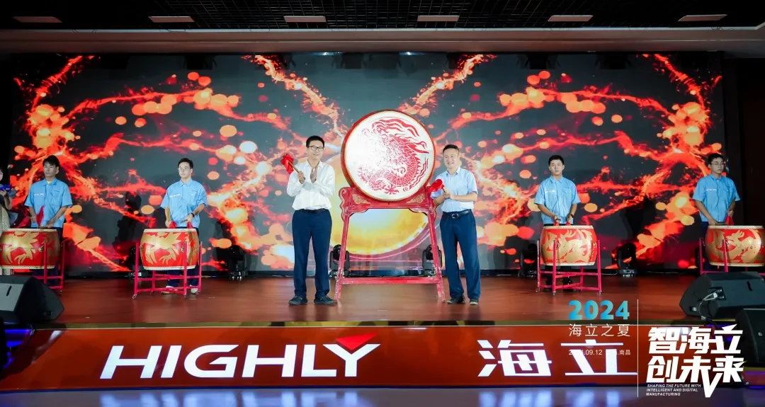 调研期间,正值“hth手机app下载之夏”员工文艺晚会举办,吴磊与南昌经开区党工委副书记吴江辉共同为晚会击鼓启幕。